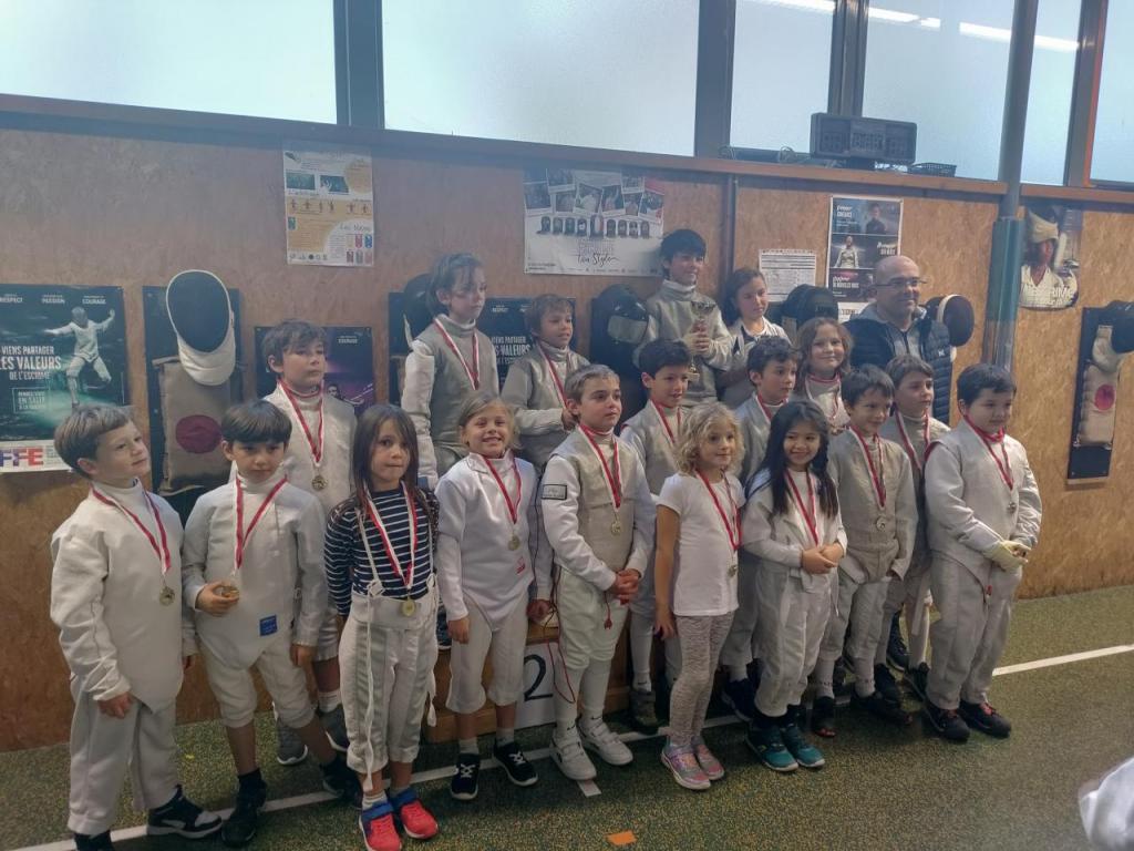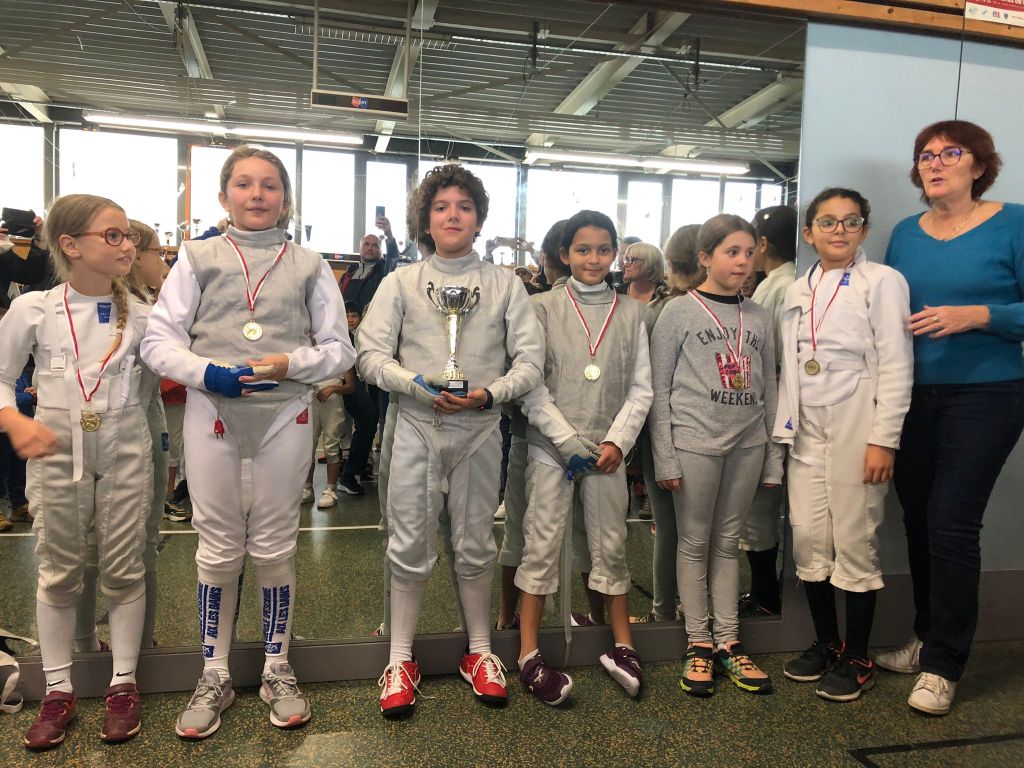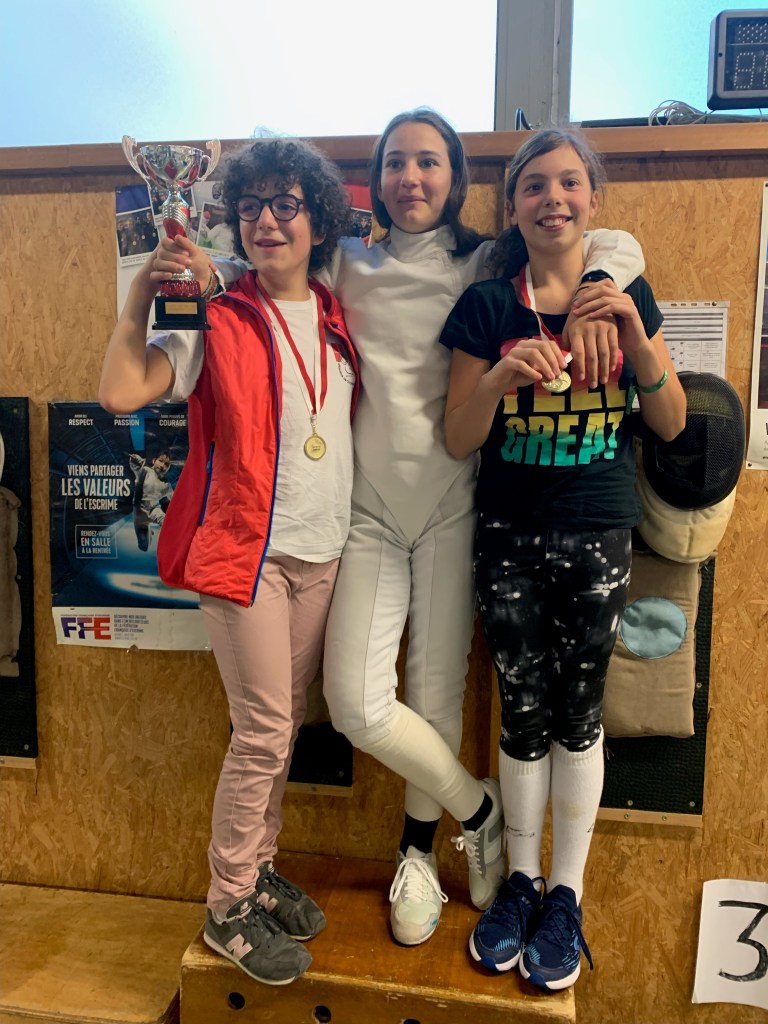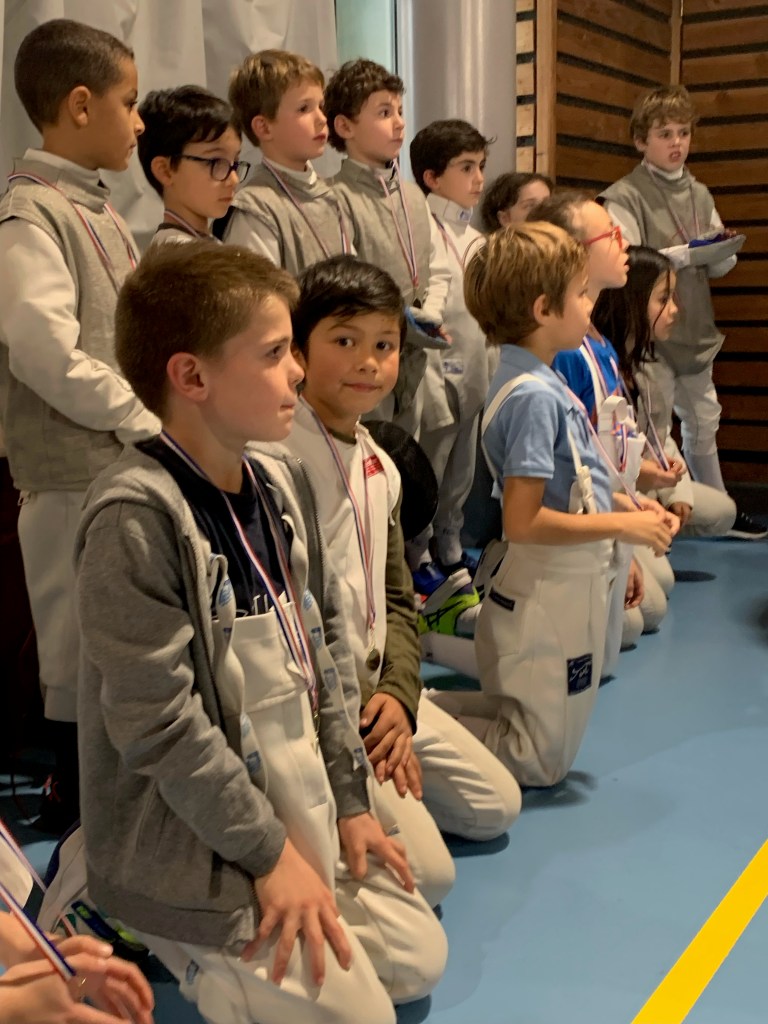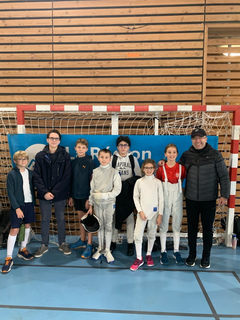 Au fleuret M9 Lian se hisse à la 9ème place ! Toujours au fleuret, mais en M11, Lina monte sur la troisième marche du podium et Manon à la 5ème place ; côté homme, Timothé fini 17ème et Aloys 7ème !