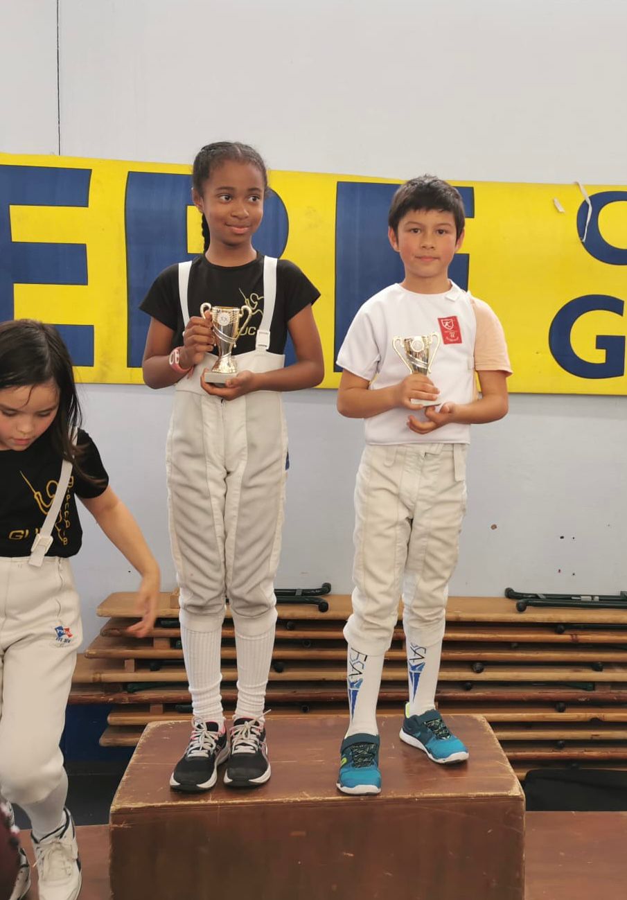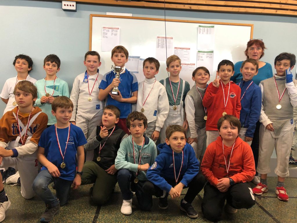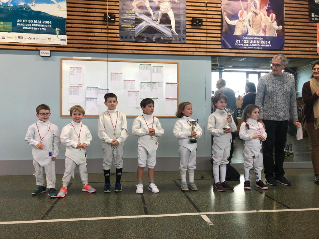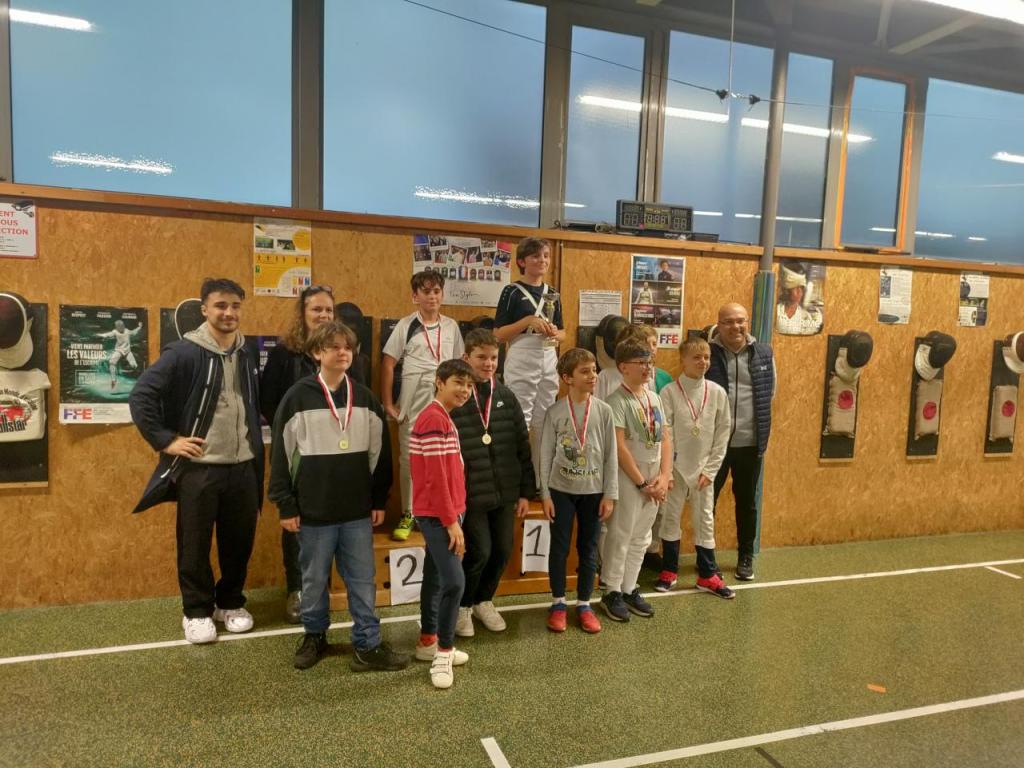Au fleuret M9 Lian se hisse à la 9ème place ! Toujours au fleuret, mais en M11, Lina monte sur la troisième marche du podium et Manon à la 5ème place ; côté homme, Timothé fini 17ème et Aloys 7ème !