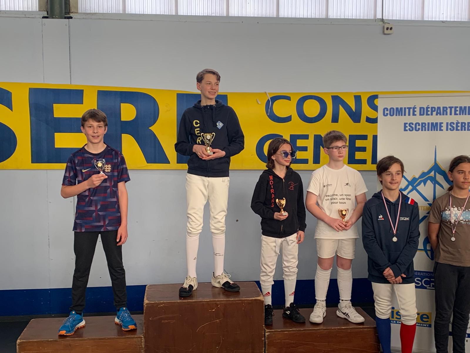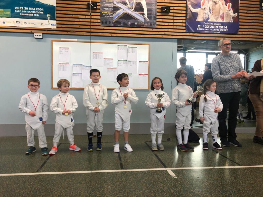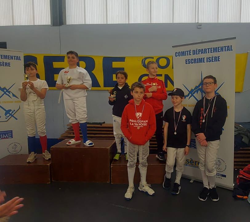 Encore à Moirans, le Challenge J. CHATEIGNER à l’épée loisir par équipes est remporté par l’équipe 1 de Chambéry composée de Xavier KUPKOWSKY, Thomas TIXIER et Nour CHIBOUD. L’équipe 2, composée de Lucie GINOUX, Benoit MARINE et Lucas MAURICE, obtient la 7ème place.