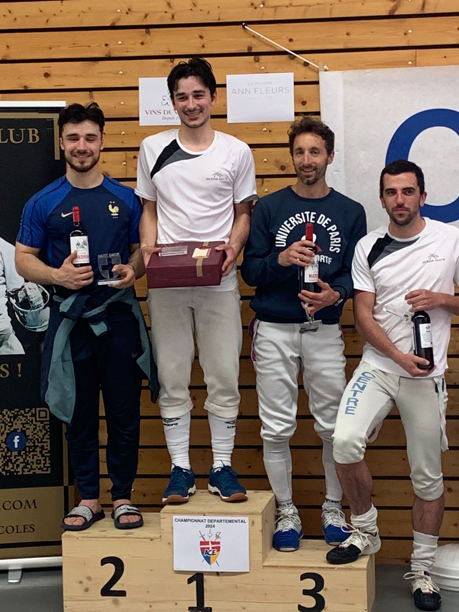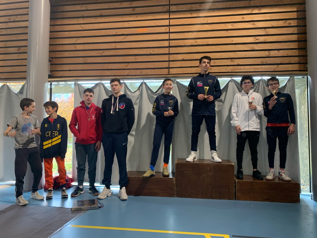 Championnat départamental de Haute Savoie de fleuret sénior à Annemasse : Beatrice BARBIER obtient la deuxième place chez les filles, tandis que Mathys JABOUILLE et François UMBERKAMP finissent respectivement deuxième et troisième chez les garçons.