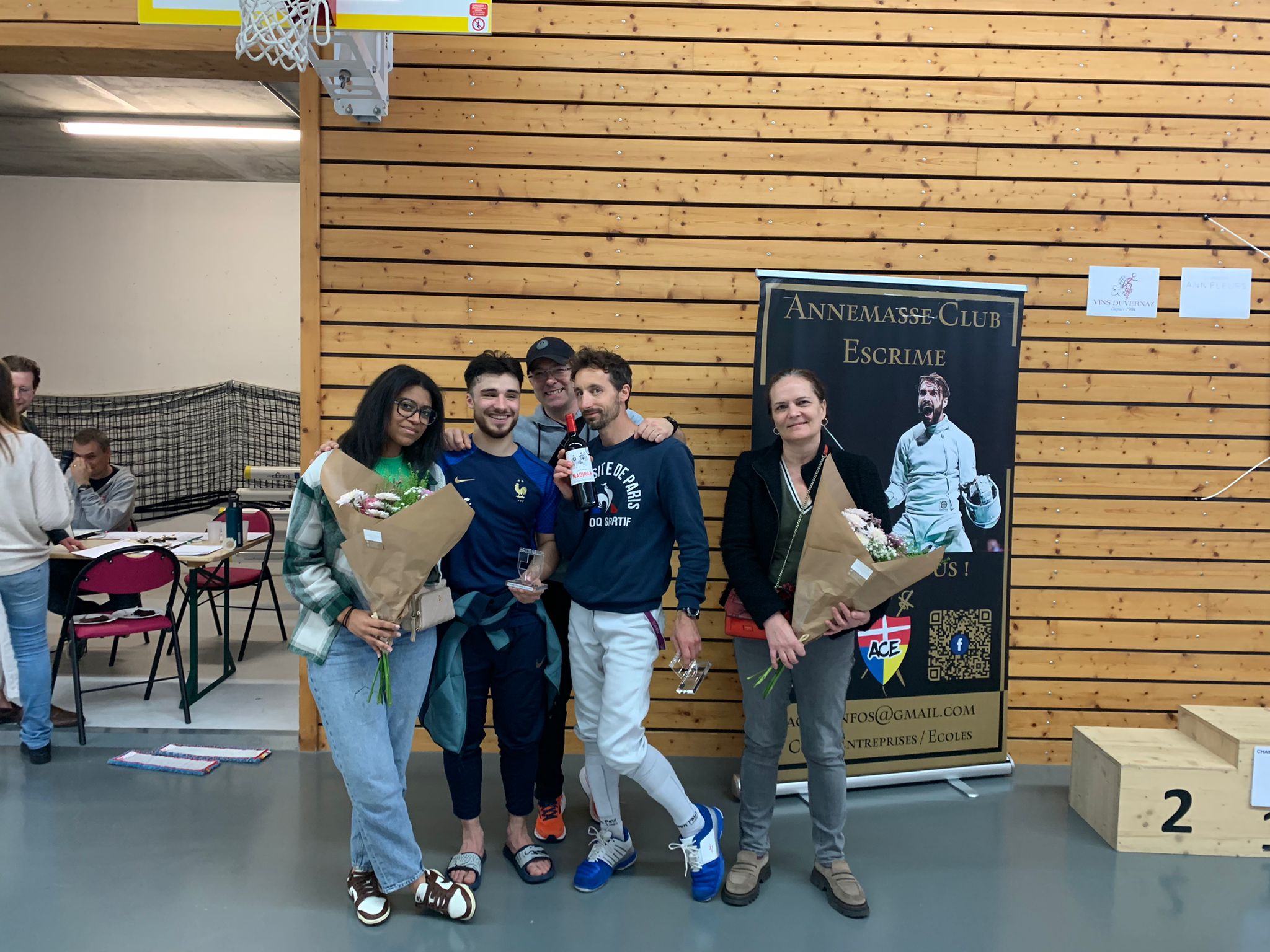 Un mot pour les deux escrimeurs -15 qualifiés à la “fête des jeunes”(l’équivalent du Championnat de France), Valentine CLAUS-VAZ et Issane AZZAZA, en individuel. Ils représentent également le club dans les équipes régionales au même tournoi.