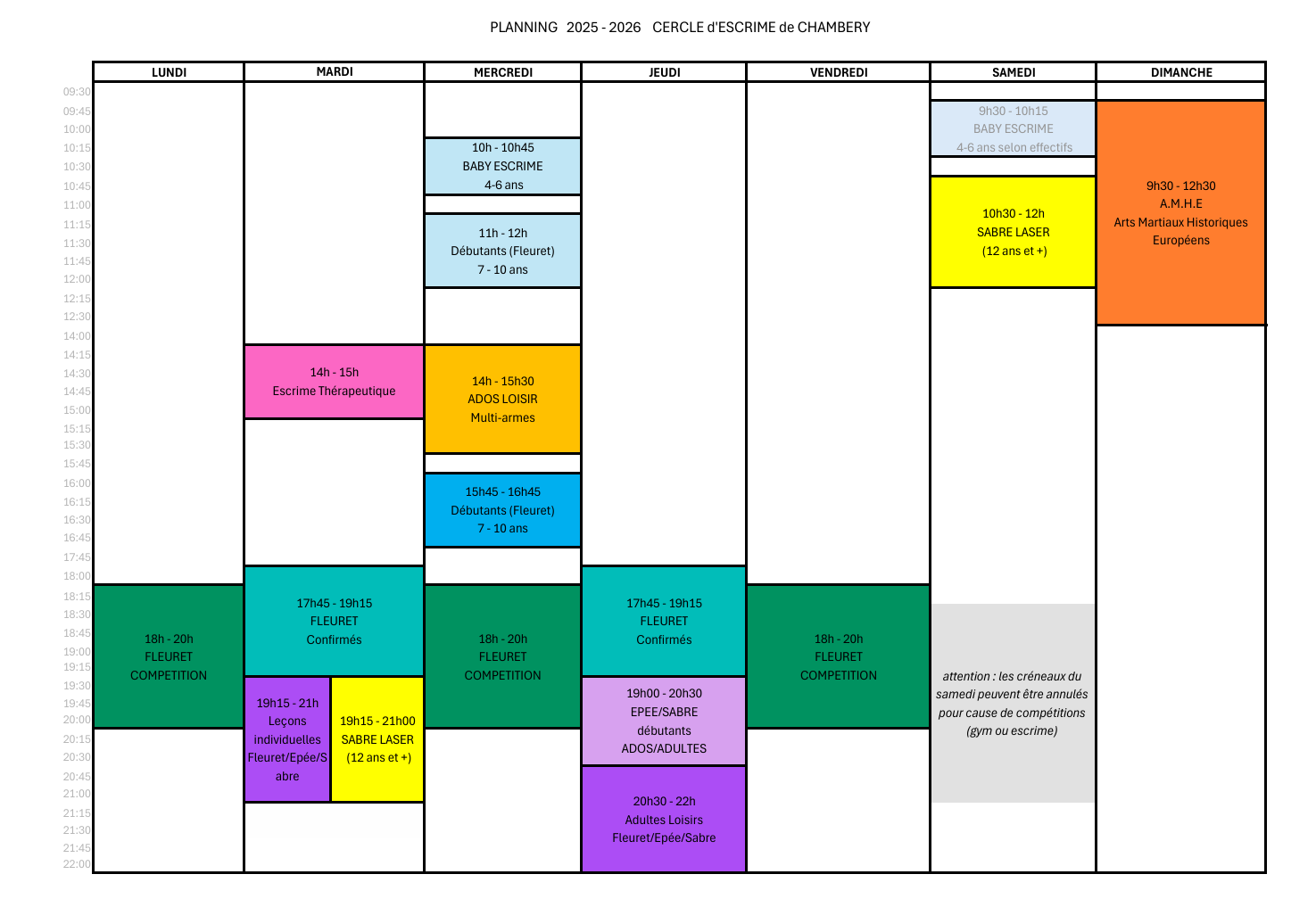Compétiteurs ou non, épéistes, fleurettistes ou touche-à-tout, débutants ou confirmés : trouvez votre créneau !